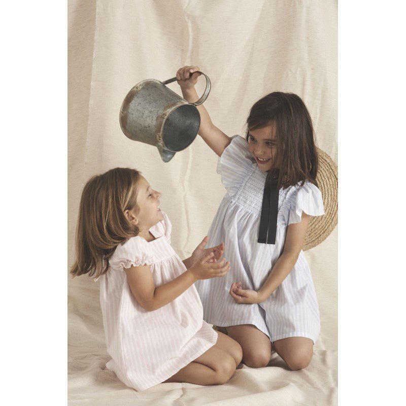 Baby girl baby girl dress with striped short-sleeved panties. Made of 100% Cotton in Pink